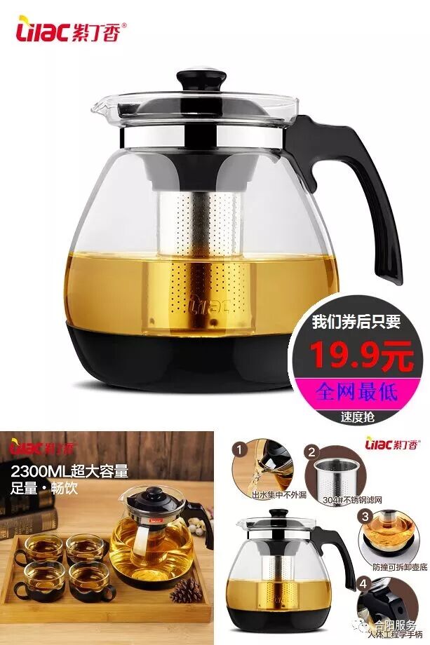 今日推荐:紫丁香 耐热玻璃过滤茶壶 大容量