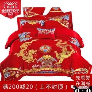 【推荐理由】喜庆婚庆套件,大气刺绣贡缎,全棉亲肤,让婚庆喜日甜蜜~