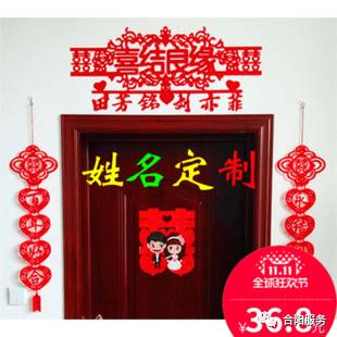 【推荐理由】结婚庆用品,喜字拉花,婚房装饰,个性创意,不管是自用,还是送朋友都非常时尚,不伤墙的无痕胶点,环保毛毡布材质,可水洗不掉色,可以定制姓名,自己设计图案!