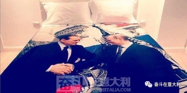 俄罗斯卫星网称,赠送绣花被罩的消息已被接受该特殊订单的公司证实。报道称,,背景是俄罗斯和意大利著名的名胜古迹:瓦西里·布拉任内教堂和罗马竞技场。