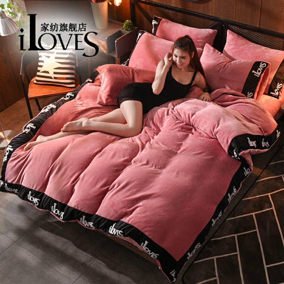纯色韩版加厚保暖珊瑚绒法兰绒法莱绒四件套冬季床单被套床笠款【包邮】