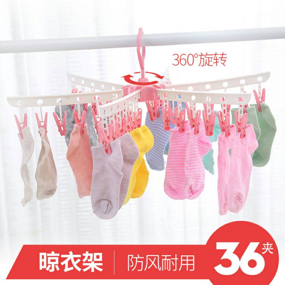 家用多功能塑料多夹子折叠晾衣架内衣袜子晾晒架婴儿衣架防风晒架