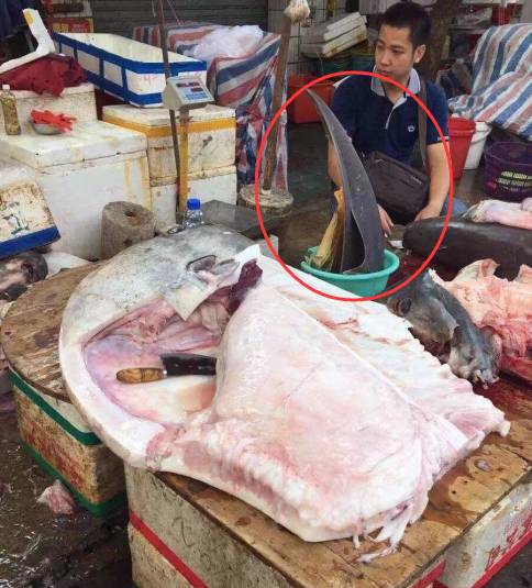 在大亚湾东的市场上,可以看见贩卖的鱼翅和翻车鱼