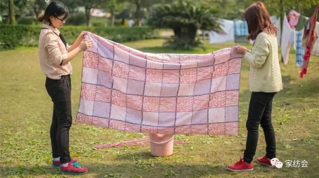⑥绣花被套晒出前,尽量把被套拉平整再晾晒,避免烘干。因为绣花被套中的丝带有可能会在烘干的过程中变形,造成不美观,熨烫时一定要采取低温;