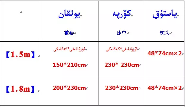 【1.5m床】被套150*210cm×1 ,床单:230*230cm×1,枕套:48*74cm×2