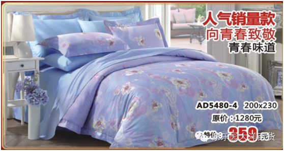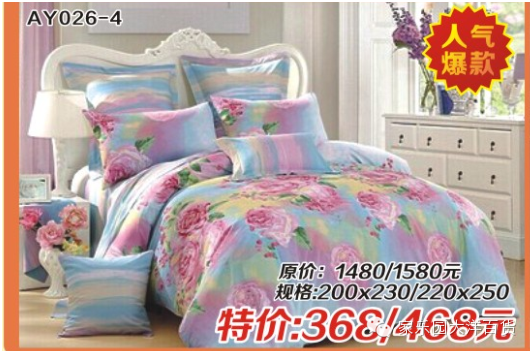 纯棉双人被套原价198元、抢购价88元、每天限量10条、(抢购时间:2月28日-3月15日)
