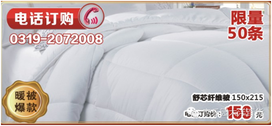 被子爆款电话提前预定舒心被150*215原价418,电话预订价159元,仅限50条哦!