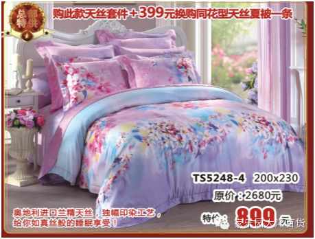天丝套件3.3折抢奥地利进口兰精天丝,独幅印染工艺,给你如真丝般的睡眠享受!200*230 原价2680元、电话预定仅需899元