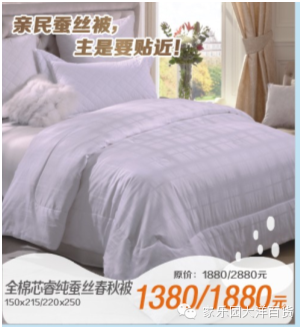 罗莱桑蚕丝春秋被150*215/220*250原价1880元/2880元、特价1280元/1499元