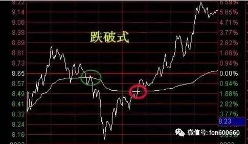 跌破式支撑指股价线向下跌破均价线后,在较短时间里,又被拉回均价线之上的走势。