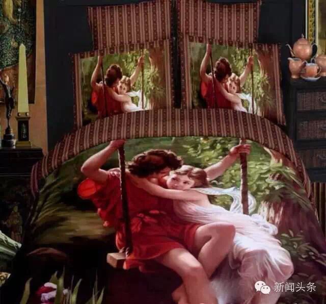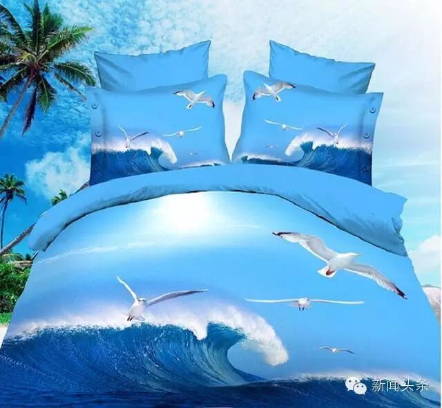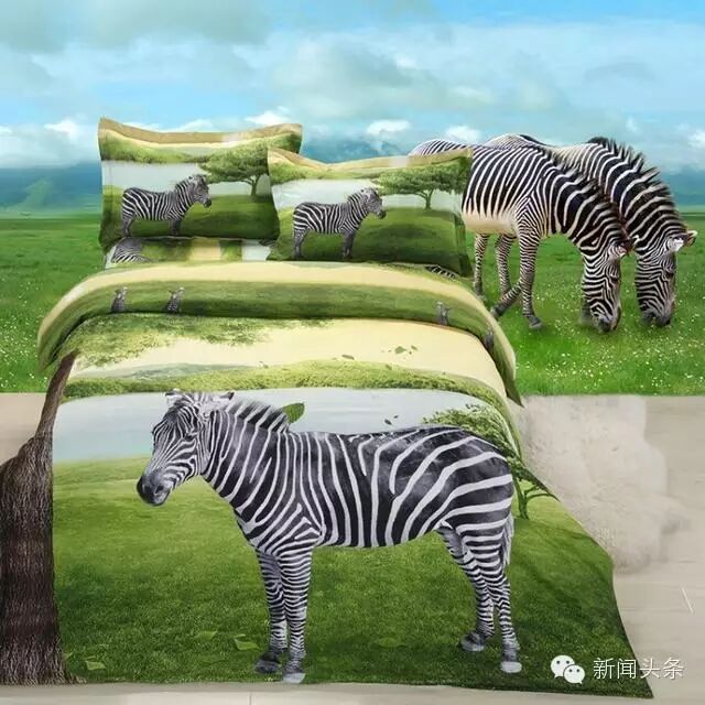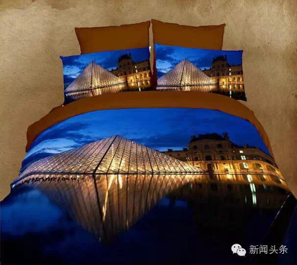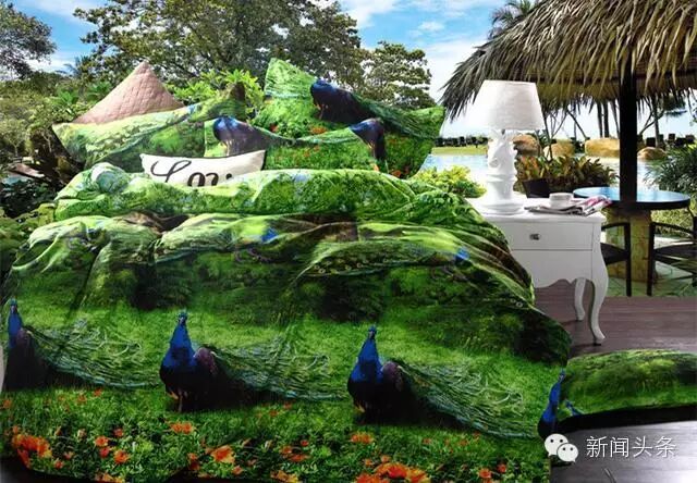 原来3D床单是在床单被套上印上大幅的图片、摄影作品甚至是油画,虚拟实境,制造出立体感超强的视觉效果。