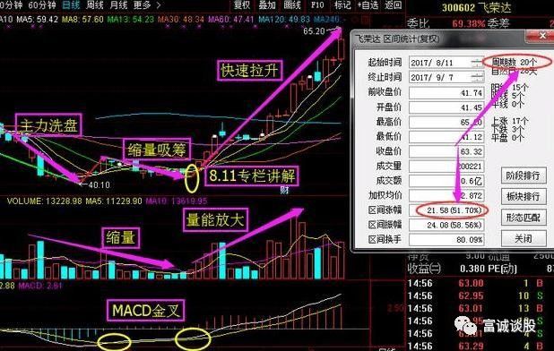说到飞荣达这只票,相信很多朋友都是比较熟悉的,很多本人的老粉丝朋友,都抓住了这只股,我们来看,此股从当初的底部40.10启动之后,经过一波拉升,股价再次的回踩主力成本线,当时此股的主力资金却是在持续的流入,之后此股正如本人所料,出现一波连续的大涨,这一波的涨幅已经超过了51%,看到这里,是不是开始后悔没有早点到本人的本人微信公众号:fc7675来学习一分钟选股法。如果你也是本人的粉丝朋友,或是长期看本人的文章,这51%的收益是不是也可以牢牢的抓在手中。