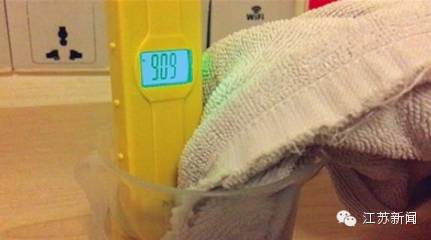 在海友酒店(北京丰台大成路店)以同样的方法进行测验。毛巾的PH值达到10.03;枕套的PH值也达到9.90。