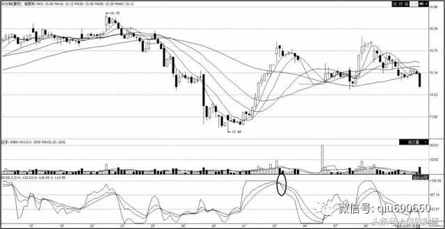 (2)如果30分钟KDJ指标跌至20以下后掉头向上,而60分钟KDJ指标还在50以上,则要观察60分钟K线是否会有效穿过D线,且K值大于D值的20%。若穿过有效表明将要开始一轮新的上攻;若穿过无效则表明仅是下跌过程中的反弹,反弹过后股价仍要继续下跌。