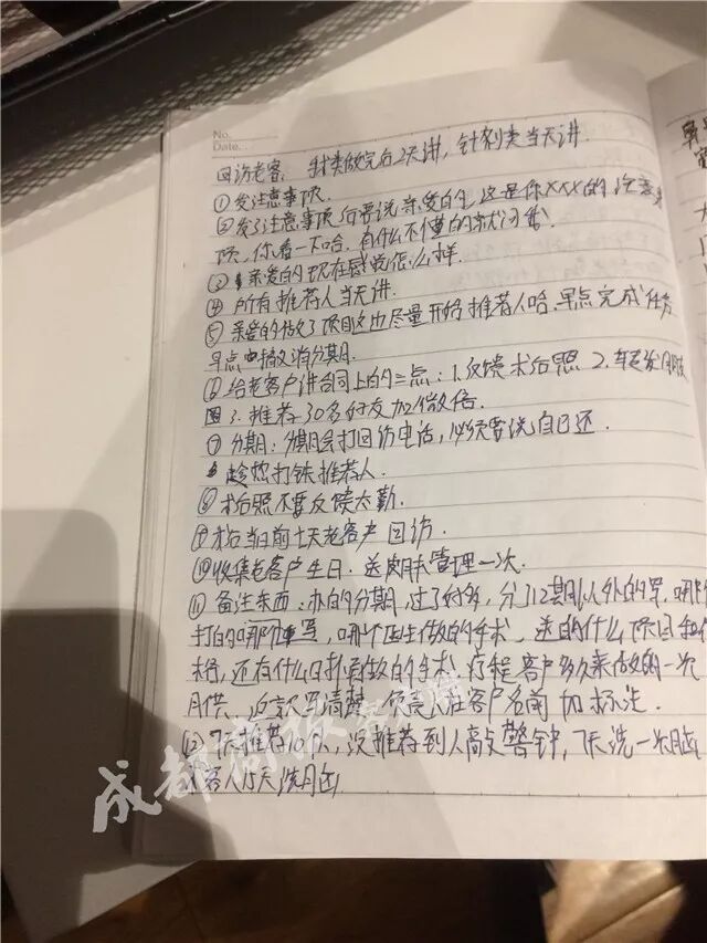 暗访过程中,记者在一个咨询室意外地发现了一本东美工作人员的工作记录本,里面详细记录了如何“洗脑”客户: