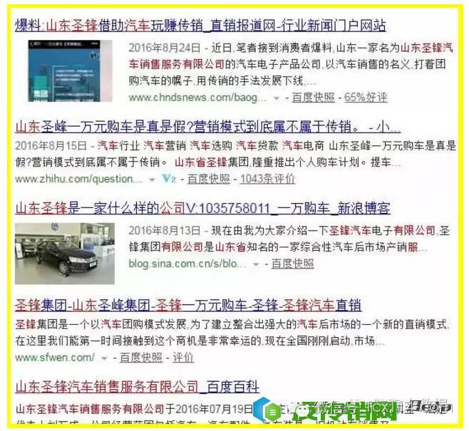 据悉,本次广告宣传的主角是山东圣锋汽车销售服务有限公司(以下简称“圣锋汽车”)。在其发布的广告宣传中,号称一万元提车是全新的“汽车团购销售模式”:消费者只需要给公司交订车款一万元,再推广两个朋友也各交一万元订车款,就可以申请提车了,30%首付款、上牌费、购置费、保险全部由圣锋汽车垫付。另外还有市场提成推广奖励。(本文转自防骗大数据:FPData)