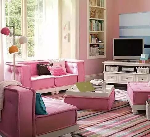 花瓣形的抱枕花边搭配粉嫩的休闲空间,增添了甜美的气息。
