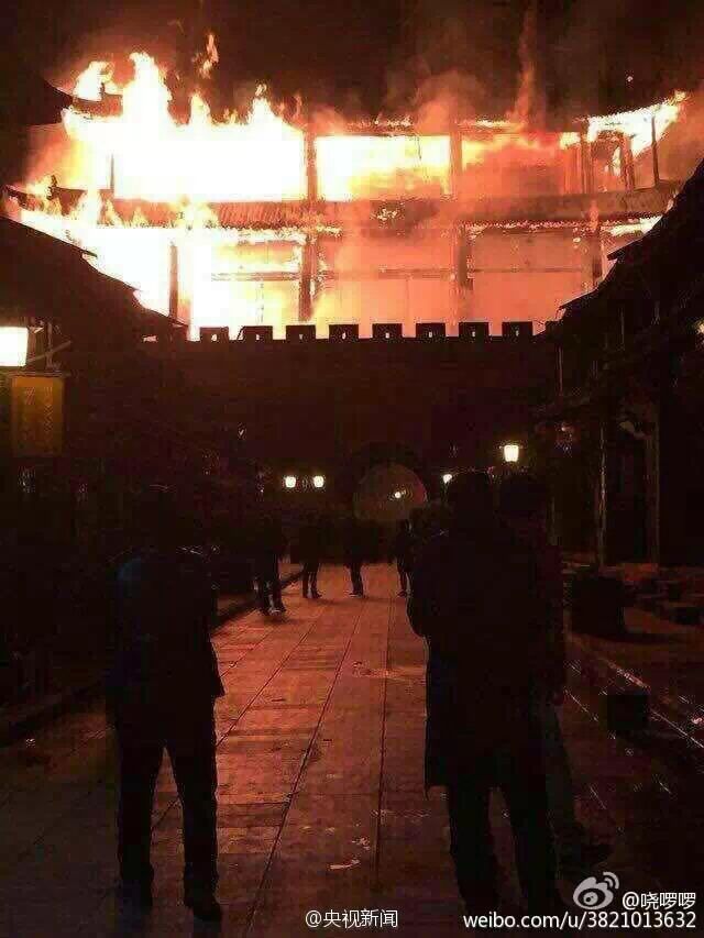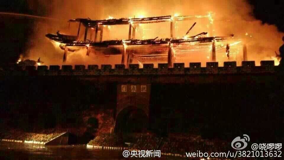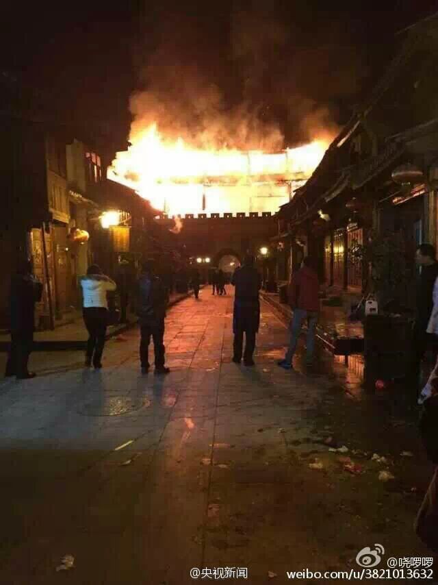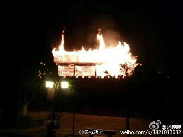 今天凌晨2时49分,云南大理州巍山县南诏镇拱辰楼发生火灾,过火面积约300平方米,截至4时48分,明火已扑灭,城楼上半部分被烧毁,没有造成人员伤亡,起火原因正在调查。该城楼始建于明洪武23年(1390年),距今有600多年历史,云南省级文物保护单位。