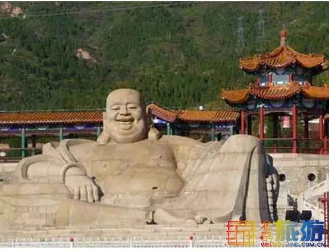北方最大的石雕大佛:在蟒山环抱的山脚平台上,端坐落着一尊面目慈善的弥勒大佛,高达9.9米,重1500余吨,由200块5~10吨重的花岗石雕刻切成,是中国北方地区最大的石佛。大佛由中国著名雕塑家赵树桐教授设计,80名石匠花了一年时间才完工。石佛前5000平方米的草坪上的十二生肖雕塑更是栩栩如生、憨态可掬,许多游客慕名而来,争相留影。