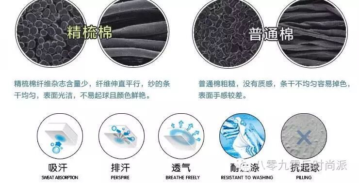 其次,不同的纺织工艺,其面料的质感相差甚远。精梳棉相较于普通棉,在纺织过程中梳去较短纤维,而留下较长而且整齐的纤维,同时剔除棉花中的杂质,以制造出平滑的纱线,让棉花更有韧性,不易起毛球,出来的面料品质更高。