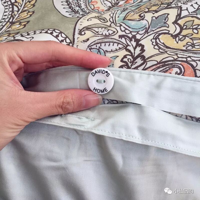 今天团的四件套贡缎、60支300根面料,缎纹工艺,更加亲肤顺滑。被套为AB面设计,套件为滚边工艺,立体感强,被套为内扣纽扣,枕套为信封口,方便使用,避免掉色及其剐蹭。