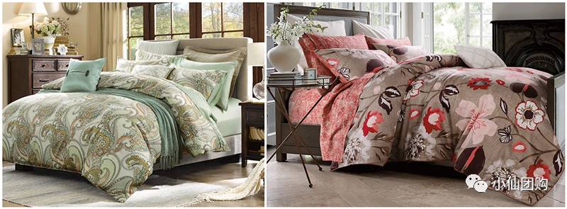 绿色系的床单为纯色床单;红色系的床单为花色床单,若是夏天单铺床单也非常好看。